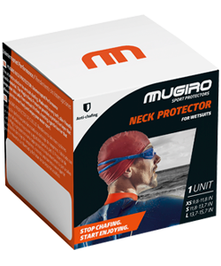 Collar-shaped guard, protecting the most sensitive areas of the neck from chafing and injuries caused by wetsuit use in water sports (swimming, surfing, scuba diving,...).